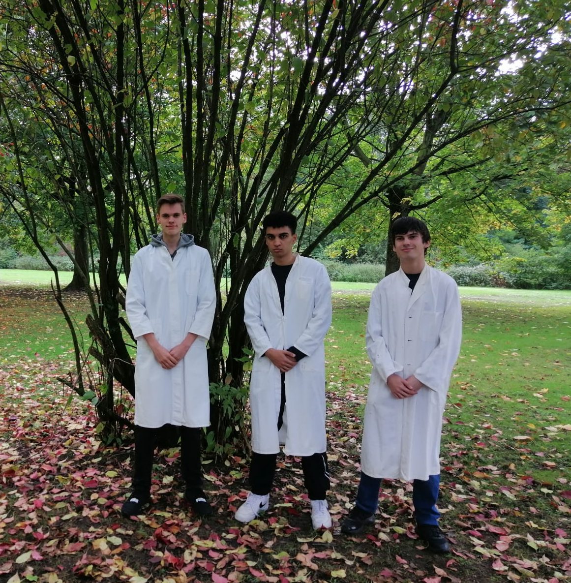 Sören, Nico und Usama aus der Jahrgangsstufe Q2 schafften es mit herausragender Leistung Frau Dr. Meyer-Inci zu überraschen und dem RSG den vierten Platz beim Tag der Chemie zu sichern. Die drei hoch motivierten Schüler meisterten nach mehreren wissenschaftlichen Vorträgen und verschiedensten naturwissenschaftlichen Experimenten den Fragebogen mit Bravour. Sie konnten sich gegen 16 andere Teilnehmer*innen durchsetzen, die an ihren Schulen z.T. einen Chemie-Leistungskurs belegen, und erzielten den vierten Platz der Gesamtwertung.