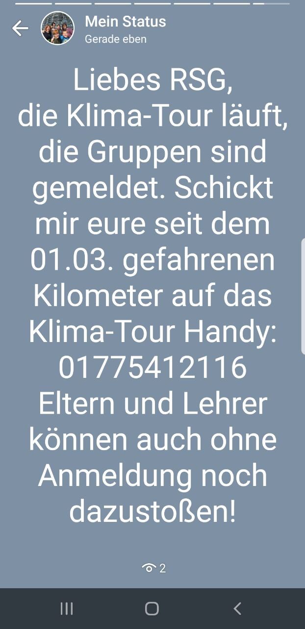 Klima-Tour läuft! cycle path 3444914 640Fahrradfahren ist nach wie vor erlaubt und erwünscht! Indivuell draußen sein und großen Abstand halten ist gesund. Deshalb läuft die RSG-Klima-Tour! Hier gibt es Informationen dazu:teilen teilen teilen E‑Mail