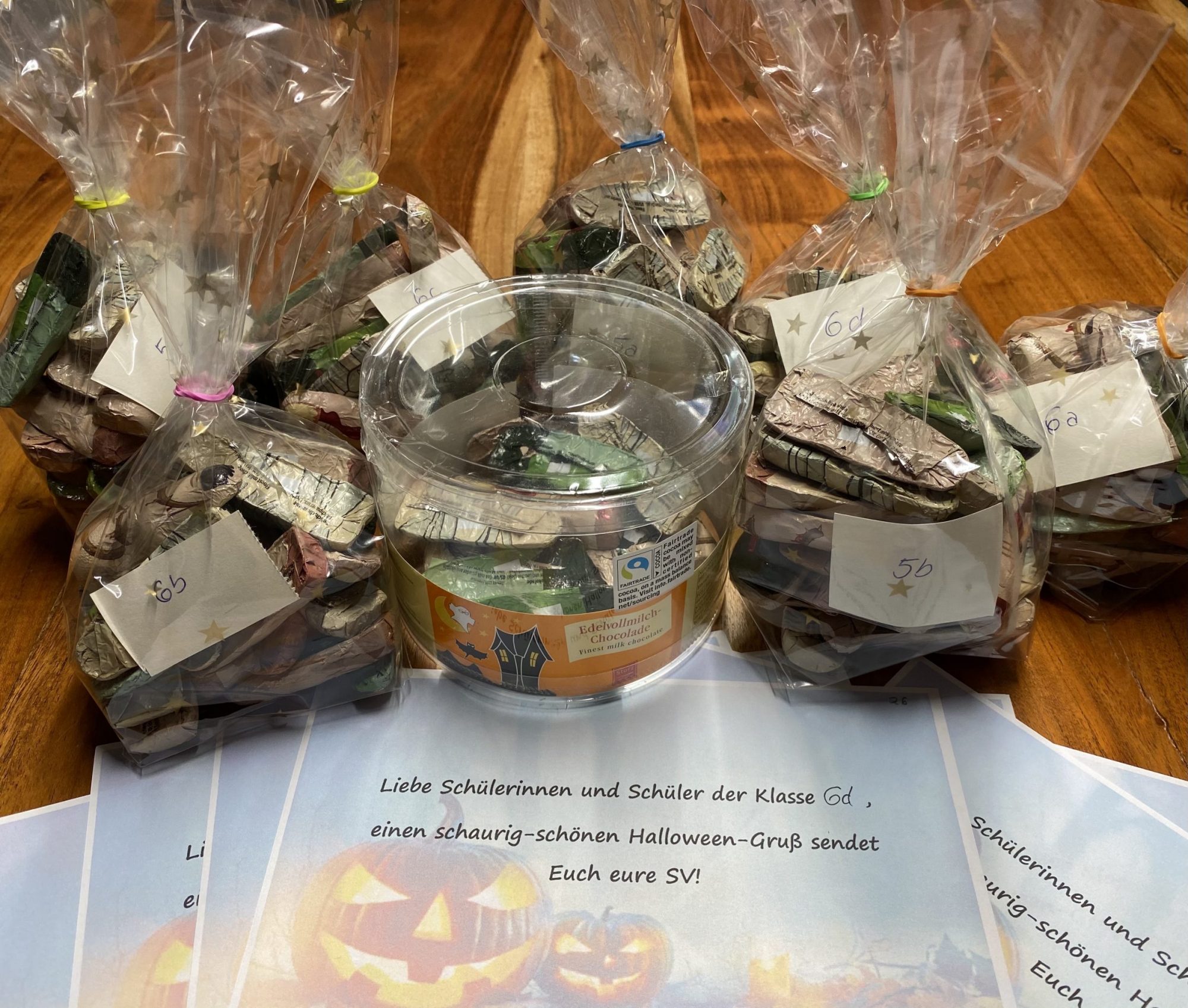 Das hat die Schü­ler­ver­tre­tung zum Anlass genom­men, den Klas­sen den­noch ein wenig Gru­sel­stim­mung zu ver­mit­teln und ihnen als klei­ne Ent­schä­di­gung für die aus­ge­fal­le­ne Par­ty einen schau­rig-schö­nen Hal­lo­ween-Gruß geschickt.